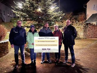 Der Erlös der Veranstaltung in Höhe von 908,75€ spenden der Nikolaus, Schutzpatron der Kinder, und die Feuerwehr für die Sanierung des Gransdorfer Spielplatz.