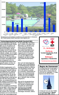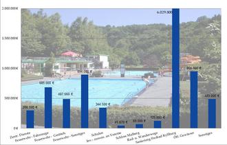 Darstellung der veranschlagten Investitionen im Haushalt 2023; im Hintergrund das Freibad Kyllburg, dessen Sanierung in 2023 beginnen soll