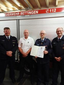 Die Freiwillige Feuerwehr Bettingen, die Verbandsgemeinde und die Wehrleitung Bitburger Land danken Dir herzlich für Deinen unermüdlichen Einsatz über viele Jahrzehnte. Für die Zukunft wünschen wir Dir weiterhin alles Gute und vor allem Gesundheit.