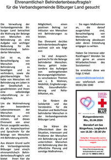 | ∙ | Sie fördern die Solidarität und das Verständnis für die Situation und Bedürfnisse behinderter Menschen in der Verbandsgemeinde Bitburger Land. |
