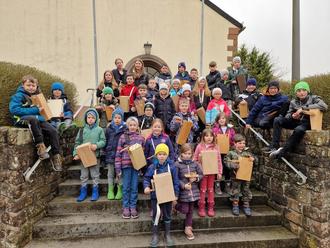 An der Pfarrkirche St. Margareta stellten sich die Klapperjungen und Klappermädchen von Burbach und Neustraßburg zu einem gemeinsamen Gruppenfoto auf. Die Ortsgemeinde freut sich über den Erhalt dieser Tradition und den Zusammenhalt unter den Kindern.
