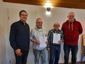 Der Ortsbürgermeister Norbert Fleckner bedankte sich bei beiden für ihr Engagement und überreichte ihnen die entsprechende Ehrenurkunde.