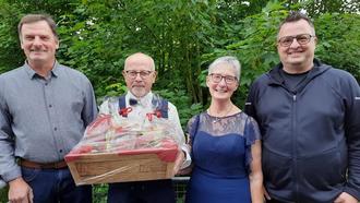 Zu dem Jubiläumsfest gratulierten neben der Familie, Freunden und Nachbarn auch im Namen der Gemeinde Ortsbürgermeister Dietmar Tures und der Beigeordnete Josef Klankert und überbrachten die Glückwünsche der Verbandsgemeinde und des Eifelkreises.