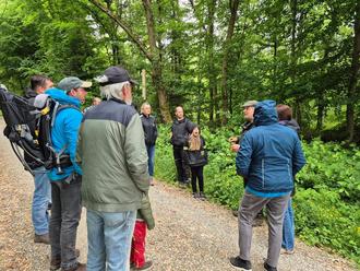 Während der zweistündigen Wanderung erklärte der Förster anschaulich, wie sich der Wald im Laufe der Jahrzehnte verändert hat. Nach dem Krieg waren selbst große Teile des Waldes zerstört, die wieder aufgeforstet werden mussten. Heute stellt der Klimawandel die Forstwirtschaft vor ganz andere Herausforderungen als noch vor vielen Jahren. Besonders hart trifft das den Fichtenbestand, der zunehmend unter Trockenheit und Borkenkäferbefall leidet.