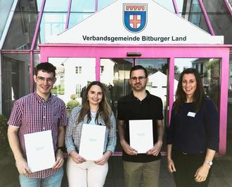 Wer hoch bauen will, braucht ein solides Fundament. Dieser Grundsatz lässt sich auch auf das Arbeitsleben anwenden, denn wer eine gute Ausbildung hat, kann später auf das Erlernte aufbauen. Und eine Ausbildung bei der Verbandsgemeindeverwaltung Bitburger Land bringt, unabhängig vom Ausbildungsweg, schon vom Grundprinzip her viele Vorteile mit sich. „Unsere Auszubildenden sind von Anfang an nah am Bürger. Sie lernen, welche Themen innerhalb der Verbandsgemeinde wichtig sind – und vor allem was den Menschen wichtig ist“, sagt Bürgermeisterin Janine Fischer und ergänzt: „Das angestaubte Verwaltungsimage ist meiner Meinung nach längst überholt. Natürlich lernt man auch, Dinge zu verwalten, aber viel mehr lernt man, komplexe Sachverhalte durch die richtige Kommunikation verständlich zu machen. Im Gespräch mit den Bürgerinnen und Bürgern werden unsere Azubis so zu Problemlösern und Kommunikationspartnern auf Augenhöhe. Dadurch, dass sie hier in die verschiedensten Bereiche Einblicke erhalten, können sie sich außerdem ein umfangreiches Wissen aneignen, was ihnen beruflich enorm weiterhelfen wird.“