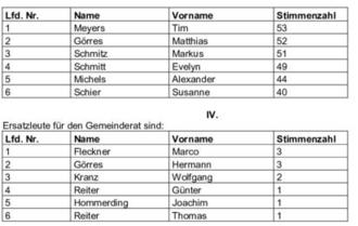Der Gemeindewahlausschuss hat in seiner Sitzung am 10.06.2024 das Ergebnis der Wahl zum Gemeinderat wie folgt festgestellt: