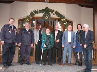 v.l.n.r.: Wehrführer Karl Kimmlingen, stellvertretender Wehrführer Christian Backes, VG-Bürgermeisterin Janine Fischer, Elfriede Clemens, Günter Clemens, Ortsbürgermeister Otmar Schröder, Beigeordnete Alwine Fleischmann und der SV-Vorsitzende Wolfgang Fandel