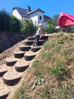 Am Spielplatz wurde an der Hangrutsche eine Treppe auch für die Kleinsten geschaffen.