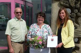 (v.l.n.r.: Büroleiter Christof Müller, Frau Ute Reinhard, Bürgermeisterin Frau Janine Fischer)