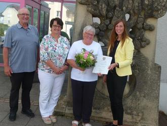 Zum Ende des Schuljahres 2021/2022 ist Frau Susanna Hargarten aus der Beschäftigung als Betreuungskraft an der Grundschule Neidenbach ausgeschieden. Die Bürgermeisterin der Verbandsgemeinde Bitburger Land Frau Janine Fischer verabschiedete Frau Hargarten im Rahmen einer kleinen Feierstunde im Rathaus in Bitburg und überreichte zum Dank für die geleistete Betreuungsarbeit eine Dankurkunde sowie einen Blumenstrauß.