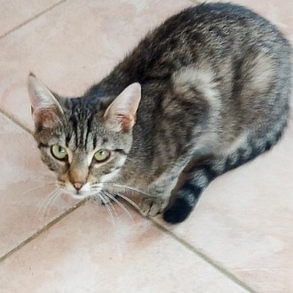Kimba war ein kleiner Streuner und wurde von Tierschützern gefüttert. Aufgrund dessen hat er noch eine gewisse Scheu, aber beobachtet sein Umfeld sehr genau. Er hat einen liebenswürdigen Charakter.