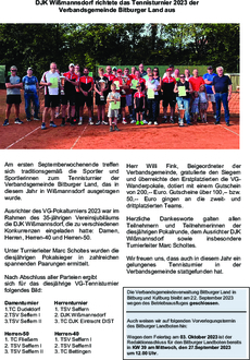 Wir freuen uns, dass auch in diesem Jahr ein gelungenes Tennisturnier in der Verbandsgemeinde stattgefunden hat.