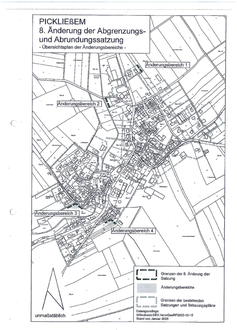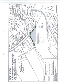 Der Ortsgemeinderat Pickließem hat in öffentlicher Sitzung am 08.05.2024 aufgrund des § 34 Abs. 4 des Baugesetzbuches (BauGB) i. V. m. § 24 der Gemeindeordnung (GemO) eine 8. Änderung der Abgrenzungs- und Abrundungssatzung beschlossen. Die Satzung ist nicht genehmigungspflichtig. Der Ortsbürgermeister der Ortsgemeinde Pickließem hat die 8. Änderung der Abgrenzungs- und Abrundungssatzung am 13.09.2024 ausgefertigt.