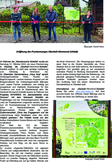 Im Rahmen der „Wanderwoche Südeifel“ wurde am Samstag, 01. Oktober 2022, der neue Premiumweg in Oberkail, die „Oberkail-Himmerod-Schleife“, feierlich eröffnet. Er stellt eine wichtige Verbindung zum Eifelsteig in Himmerod dar.