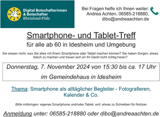 um in der heutigen Zeit dem technischen Fortschritt gerecht zu werden und mithalten zu können, bieten wir in der Alten Schule für Senioren eine Fortbildung an für den täglichen Handygebrauch, bzw. dem Smartphone.