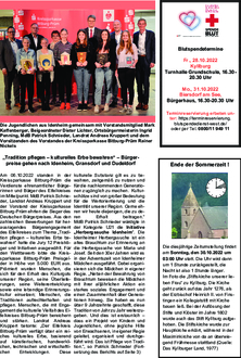 Am 06.10.2022 standen in der Kreissparkasse Bitburg-Prüm die Verdienste ehrenamtlicher Bürgerinnen und Bürger des Eifelkreises im Mittelpunkt. MdB Patrick Schnieder, Landrat Andreas Kruppert und der Vorstand der Kreissparkasse Bitburg-Prüm ehrten die Sieger des Deutschen Bürgerpreises. Aus den zahlreichen Bewerbungen für herausragendes Bürgerengagement des Eifelkreises zum Thema „Tradition pflegen - kulturelles Erbe bewahren“ hatte die Jury 12 Preisträger und Initiativen ausgewählt. Für den Wettbewerb lobte die Kreissparkasse Bitburg-Prüm Preisgelder in Höhe von 5.000 EUR aus.