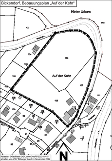 Der Ortsgemeinderat Bickendorf hat am 16.11.2022 beschlossen, einen Bebauungsplan nach § 13b BauGB für das Teilgebiet "Auf der Kehr“ aufzustellen.