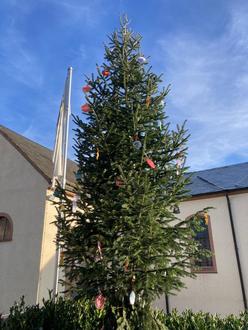 Unser Baum am Kirchplatz konnte, dank der Kita Rittersdorf, mit vielen bunten Kugeln, Sternen und Zuckerstangen geschmückt werden.