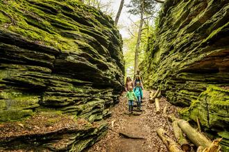 Unterwegs zwischen Himmel und Hölle – so fühlt man sich auf der Grüne-Hölle-Tour: Schmale Pfade, die sich durch bizarre Sandsteinfelsformationen schlängeln, phantastische Weitblicke über die Landschaft, Spuren der Menschen, ihrer Geschichte und ihrer Sagenwelt. Dieser Wanderklassiker des deutsch-luxemburgischen