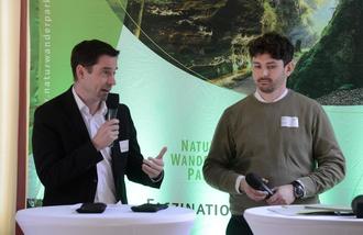 Moritz Petry, Bürgermeister VG Südeifel und Tim Schnelke, Coordinator Qualitéitswanderregioun Éislek während der Podiumsdiskussion.