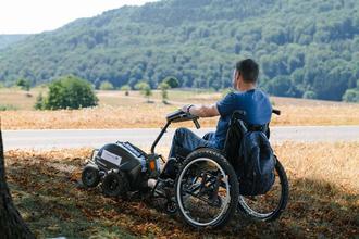 Mit einem SwissTrac können selbstständig bis zu 20 km zurückgelegt und kippsicher Absätze oder andere Hindernisse passiert werden. Steigungen und unebenes Gelände sind mit einem Zuggerät mühelos überwindbar, auch bei eingeschränkter Greiffunktion und wenig Kraft in den Armen.