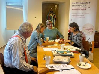 Vollständig ausgebucht war der Beratungstag für ukrainische Flüchtlinge im Pfarrheim Neuerburg. In Einzelgesprächen klärte Frau Aurita Jankauskaite-Lepage (rechts) von der Handwerkskammer Trier, welchen Wert ukrainische Schulabschlüsse und berufliche Ausbildungen in Deutschland haben. Mithilfe einer Dolmetscherin (2.v.r.) wurden Berufserfahrungen besprochen oder auch, wie man sich beruflich neu orientiert. Weitere Beratungen können mit Frau Lepage in Trier vereinbart werden unter Tel. 0651 207–151 oder mit dem Kommunalen Integrationsbeauftragten Dr. Penning (links) unter Tel. 06522–1348.