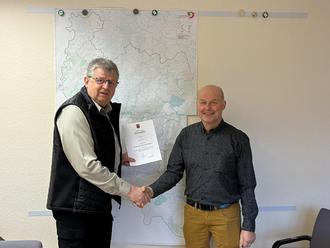 Im Kreise der Mitarbeiter des Forstamtes Neuerburg überreichte Forstamtsleiter Olaf Böhmer die Dankurkunde des Landes Rheinland- Pfalz mit besonderem Lob für stets zuverlässige und engagierte Arbeit im Staatswald und den angeschlossenen Gemeindewäldern im Forstamt Neuerburg.