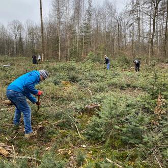 Diese Folgen sind auch auf dem knapp 1,5 Hektar großen Waldstück beim Naturparkzentrum erkennbar: „Die Küstentanne ist eine amerikanische Baumart, die an diesem Standort mit seinem dichten Boden keine guten Wachstumsbedingungen hat und die mit den extremen Trockenphasen der letzten Jahre nicht klar kam.“, sagt Julian Gröber. „Wir pflanzen jetzt widerstandsfähigere heimische Arten wie Stieleichen, Wildbirnen und Elsbeeren. Und als ganz besondere Baumart setzen wir vereinzelt Speierlinge. Diese Bäume sollen zum Zukunftswald aufwachsen und auch in 150 Jahren noch hier stehen“.