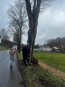 Nachdem alle Häuser nach ein paar Tagen gut getrocknet waren, wurden sie schon gleich aufgehängt und zieren jetzt die Bäume an der Lirstaler Hauptstraße und an der Kapelle. Noch während des Aufhängens kamen bereits die ersten fedrigen künftigen Bewohner, um sich neugierig im neuen Eigenheim umzusehen. Ganz lieben Dank an die kleinen Frida Kahlos und Pablo Picassos aus Lirstal – ihr habt dafür gesorgt, dass die Vögel ihrem Nachwuchs ein gemütliches Heim bieten können, und dass unser Dorf noch schöner geworden ist!