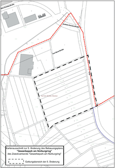 Der Zweckverband „Gewerbepark am Nürburgring“ hat am 17.03.2025 weiterhin beschlossen, dass über die beabsichtigte 5. Änderung des Bebauungsplanes "Gewerbepark am Nürburgring" für das oben angeführte Gebiet mit der Öffentlichkeit eine öffentliche Unterrichtung über die allgemeinen Ziele, Zwecke und Auswirkungen der Planung gemäß § 3 (1) BauGB durchgeführt wird.