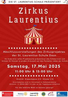 Die St. Laurentius-Schule Daun führt in Kooperation mit dem „Circus ZappZarap“ im Zeitraum vom 11.05. – 17.05.2025 ein Zirkusprojekt durch. In dieser spannenden Projektwoche lernen die Schülerinnen und Schüler in verschiedenen Workshops die vielfältigsten Genres des Zirkus kennen.