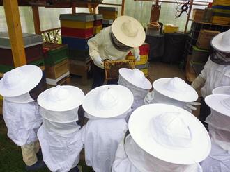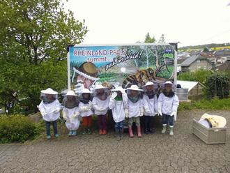 Als Höhepunkt wurde das Bienenmobil der VG Kaisersesch ausgeliehen, welches mit allem ausgestattet ist, was zum Imkern benötigt wird. Vor allem aber mit Imkerjacken und Handschuhen für Kinder, so dass wir mit allen Kindern ab 4 Jahren die Bienen einer Erzieherin, deren Bienenstöcke sich direkt neben der Einrichtung befinden, besuchen und so vor Ort noch viel mehr erfahren konnten. So konnten die Kinder erleben, was zu der Arbeit eines Imkers alles dazugehört, dabei ganz nah an die Bienen herangehen, ihr Summen hören, den Duft der Bienenstöcke riechen und Honig probieren. Selbst Kinder, die vorher etwas skeptisch oder ängstlich waren, trauten sich dann doch zu den Bienen und waren zurecht sehr stolz auf sich.
