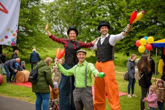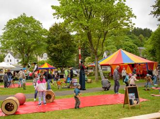 Begrüßt von Stelzenläufern konnten die kleinen Besucherinnen und Besucher ab 11 Uhr zusammen mit ihren Eltern an einem abwechslungsreichen Mitmachprogramm teilnehmen. Ob beim Zirkusparcours mit Jonglieren und Akrobatik, beim Kinderschminken, Tattoos oder beim Gestalten von Luftballonfiguren und Riesenseifenblasen – für jedes Alter war etwas dabei.