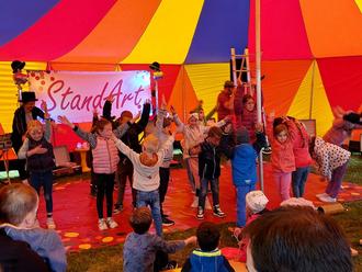 Das Highlight war die “StandArt Show” um 13 Uhr: Mit Comedy, Jonglage und viel Interaktion begeisterten die Künstler das Publikum – nicht nur die Kinder, sondern auch deren Eltern. Den krönenden Abschluss bildete die große Abschlussshow um 16 Uhr, bei der die Kinder stolz ihre am Tag erlernten Zirkuskünste präsentierten. Es war schön zu sehen, wie die Kinder spielerisch mit Unterstützung der Eltern ihre artistischen Fähigkeiten entdecken und ausbauen konnten. Die Begeisterung in den Augen der Kinder tröstete darüber hinweg, dass das Wetter nicht ganz mitspielte und die Temperaturen sehr kühl blieben.