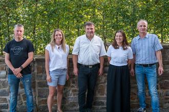 Die Ortsvorsteherinnen und Ortsvorsteher der Kelberger Ortsteile: v. l. n. r.: Hendrik Kebben (Ortsvorsteher Hünerbach), Vera Esch (Ortsvorsteherin Köttelbach), Michael Hoffmann (Ortsbürgermeister Kelberg), Anja Wingen (Ortsvorsteherin Zermüllen), Martin Mindermann (Ortsvorsteher Rothenbach-Meisenthal)
