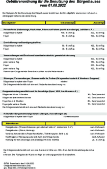 Der Mietpreis für die Benutzung des Bürgerhauses besteht aus der Grundgebühr sowie einer verbrauchsabhängigen Nebenkostenabrechnung.