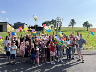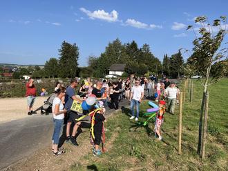 Am Samstag, dem 24.08.2024 fand am Ende der Schulstraße in Bodenbach, die feierliche Einweihung der Neugeborenenbäume statt. Dazu trafen sich zuvor alle Kinder, die in den letzten 10 Jahren geboren wurden, mit Ihren Familien im Bürgerhaus und bastelten tolle bunte Stöcke mit Luftballons und Krepppapier. Als jedes Kind mit seinem Stock zufrieden war, zogen alle gemeinsam in Richtung der neuen Baumallee. Dort angekommen begrüßte Ortsbürgermeister Thorsten Krämer alle Familien und weitere Bodenbacher Mitbürgerinnen und Mitbürger, die ebenfalls zu der kleinen Feierstunde gekommen waren. Jedes Kind übernahm eine Patenschaft für einen Baum, welcher mit dem jeweiligen Namen und Geburtsjahr versehen wurde. Dazu erhielt jeder kleine neue Pate eine entsprechende Urkunde. Es war sehr schön und beeindruckend zu sehen, wie stolz die Kinder auf Ihren Baum waren und teilweise dort einige Zeit verweilten.