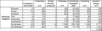 | Ortsgemeinde | Kinderzahl | Gesamtbetrag in € |