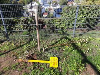 Am Mittwoch sind unbekannte Täter auf das Gelände der Kita Regenbogen eingedrungen und haben einen dort gepflanzten Birnenbaum zerstört.