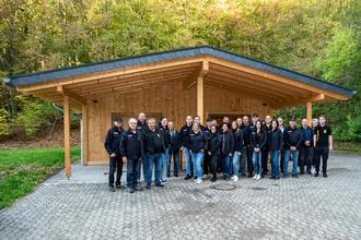 Die Helferinnen und Helfer vor der neu errichteten Hütte.