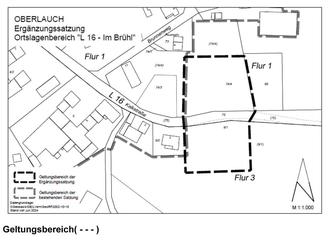 Der Geltungsbereich der Ergänzungssatzung „L16 – Im Brühl“ umfasst mit einer Gesamtfläche von 5.505 m² in der Gemarkung Oberlauch die Flurstücke