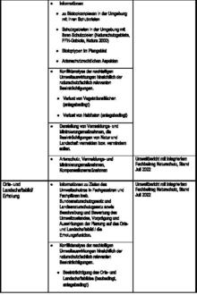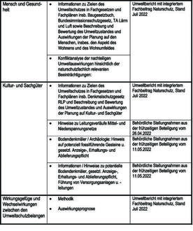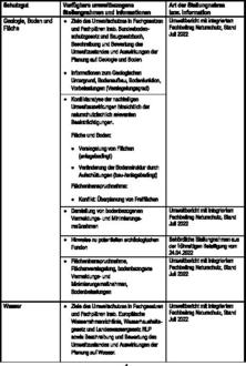 | - | Umweltbericht mit integriertem Fachbeitrag Naturschutz und artenschutzrechtlicher Prüfung zum Bebauungsplan, Stand Juli 2022: Beschreibung und Bewertung der Umweltauswirkungen der Planung auf die Schutzgüter Geologie, Boden und Fläche, Wasser, Klima und Luft, Tiere, Pflanzen und biologische Vielfalt, Orts- u. Landschaftsbild / Erholung, Mensch und Gesundheit, Kultur- und Sachgüter, Wechselwirkungen zwischen Umweltschutzbelangen |