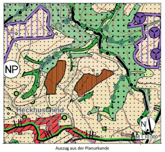 Das ca. 15 ha große Plangebiet befindet sich nördlich bis nordöstlich der Ortslage Heckhuscheid und gliedert sich in zwei Teilflächen in der Gemarkung Heckhuscheid.