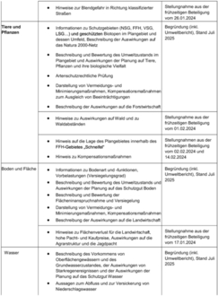 | Die folgenden nach Einschätzung der Gemeinde wesentlichen umweltbezogenen Stellungnahmen werden mit dem beglaubigten Auszug aus der Niederschrift der Sitzung des Verbandsgemeinderates Prüm vom 27.02.2024, der die gesamten eingegangenen Stellungnahmen enthält, im Internet veröffentlicht sowie zusätzlich ausgelegt: | |