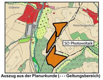 Voraussetzung für die Errichtung einer Photovoltaikanlage auf der bisherigen landwirtschaftlichen Nutzfläche ist die Änderung des Flächennutzungsplanes der Verbandsgemeinde Prüm mit der Darstellung einer Sonderbaufläche (Photovoltaik) gem. § 1 Abs. 1 Baunutzungsverordnung (BauNVO) (Zuständigkeit des Verbandsgemeinderates) und die Aufstellung eines Bebauungsplanes mit Ausweisung eines Sondergebietes (Photovoltaik) gem. § 11 Abs. 2 BauNVO (Zuständigkeit des Ortsgemeinderates Olzheim).