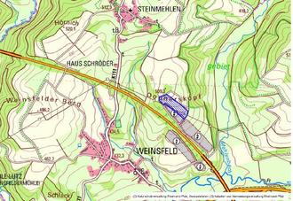 Die Solarpark Weinsfeld GmbH & Co. KG beabsichtigt die Errichtung einer Fotovoltaik-Freiflächenanlage auf der Gemarkung Weinsfeld, Flur 55, Flurstück 26 (tlw.). Geplant ist, den bestehenden Solarpark nördlich der A60 (Flurstück 26) auf bis zu 200 Meter, gemessen vom äußeren Rand der Fahrbahn, zu erweitern. Die Erweiterung umfasst eine Größe von insgesamt ca. 2,6 ha. Es handelt sich um eine landwirtschaftliche Nutzfläche, welche aktuell ackerbaulich bewirtschaftet wird.