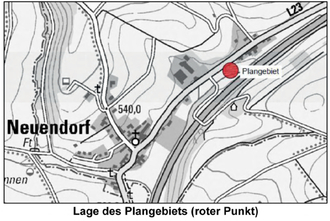 Das Plangebiet liegt zwischen der Ortslage Neuendorf und dem Siedlungsbereich Eichenwiese südlich der L 23. Der ortsansässige Gewerbebetrieb Heiko – rollende Lebensmittelmärkte befindet sich nordwestlich der hier überplanten Flächen und nördlich der L 23. Die Fläche des Änderungsbereiches liegt auf einer Höhe von ca. 509 - 510 m ü. NN.