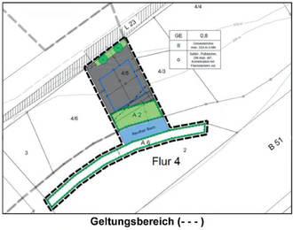Zur Realisierung des Planungsvorhabens muss der geltende Bebauungsplan am südöstlichen Rand des Geltungsbereiches geändert werden.