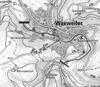 - von der Einmündung des Hochbergbachs an der Gemarkungsgrenze Niederpierscheid zur Ortsgemeinde Waxweiler bis zur Eigenfischereistrecke Jucken (Holzbrücke an der Westseite der Sportanlage Waxweiler)