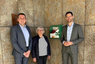 Aus diesem Grund hat die Verbandsgemeinde Arzfeld einen so genannten Automatisierten Externen Defibrillator (AED) beschafft. Dieser befindet sich am Eingangsbereich der Verwaltung in der Luxemburger Straße 6 in Arzfeld. Das Gerät ist in einem alarmgesicherten Gehäuse untergebracht, ist jederzeit zugänglich und kann bei Bedarf rund um die Uhr entnommen werden.